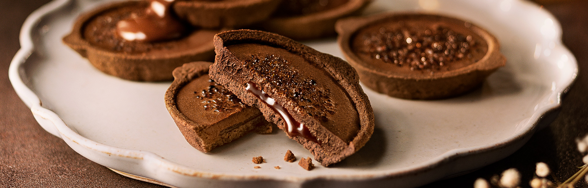 さくさくのショコラタルトから溢れるのは、ショコラキャラメルソースを秘めたショコラクリーム。